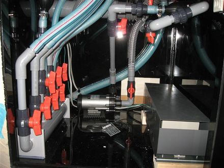 このクラスの水槽サイズなら動力3相200Vの電源でポンプやクーラーヒーターを稼動させるのが電気代を抑えるコツです。
