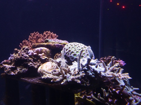 インターネットの水槽通販会社でセットされた水槽で当初から照明はKRのご注文をいただいていました。 サンゴはそこそこに飼えるのですが魚が白点になると聞いていたので見に行ってみるとレイシーのUVF1000が2台も付いているが濾過槽から水中ポンプでくみ上げて濾過槽に戻る濾過槽だけの循環であった。