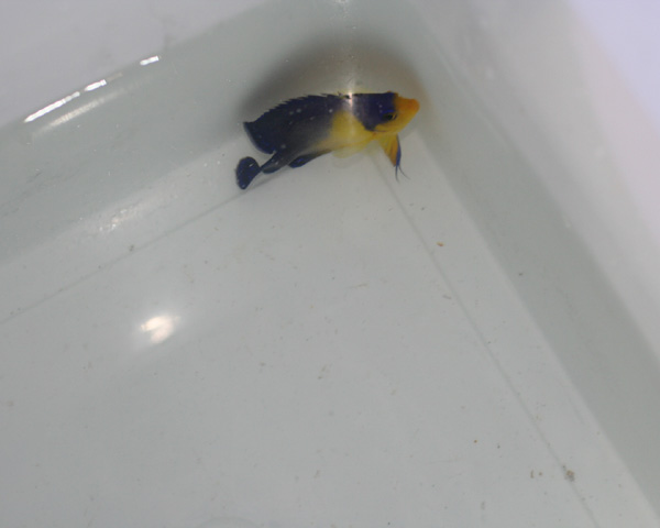 さて、本日もまたまた入荷!今日の開封しての感想は「ちっっっっさ!!!」でした。内容は、ホンソメワケベラベビー、ハタタテハゼベビー、コスジハナスズキ、ハクテンカタギBIG、スミレヤッコ、サザナミヤッコです。ホンソメのベビーはホンマに小さい!!こんなちっさいの見たことありませんでした。ハタタテベビーは4cm前後の可愛い個体☆ハクテンカタギは迫力のある12-13cm!!サザナミヤッコは大きすぎず、小さすぎずの良いサイズ。注目はコスジハナスズキです。5cmアンダーの小さなサイズ。久々入荷のかわいい子です。そしてさらに注目するのはスミレヤッコ。ちょっと大きめです。1匹しかいてませんので早いもん勝ちです!こんな感じです。本日からG・Wの方も中にはいるのでは?楽しい連休にしてください。そしてついででも良いのでぜひブルーハーバーに来てください♪手ぶらでは帰らせませんよ??(うそです)本日はあいにくの雨ですが、ぜひご来店ください。本日の営業は午後8時までとなっております。ご来店おまちしております。階段は滑らないように気をつけてくださいね!